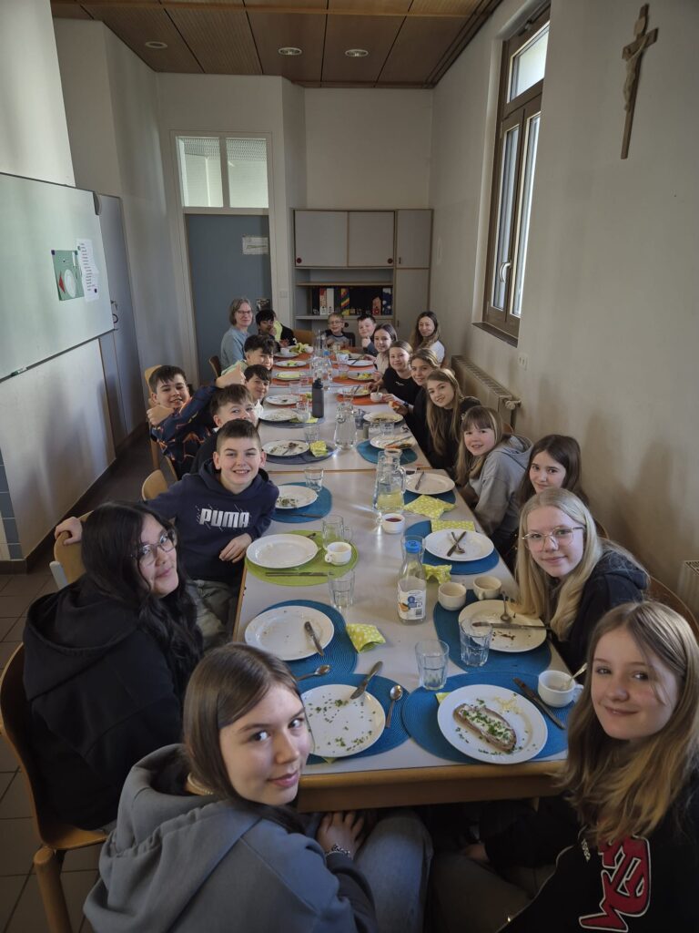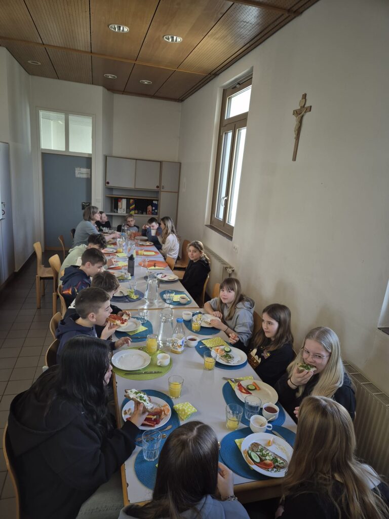 Am Mittwoch, den 12.3.2025, lud die römisch-katholische Religionsgruppe der 2b die 2. Klasse aus der Sonderschule zum gesunden Frühstück ein. Bereits vor einem Jahr fanden erste Treffen in der Sonderschule und Mittelschule statt. So bekamen die Schülerinnen und Schüler Einblicke in das jeweilige Schulleben. Am Mittwoch beim gemeinsamen Frühstück wurde viel gelacht, geplaudert und gemeinsam gegessen. Es war wieder ein schönes Treffen.
